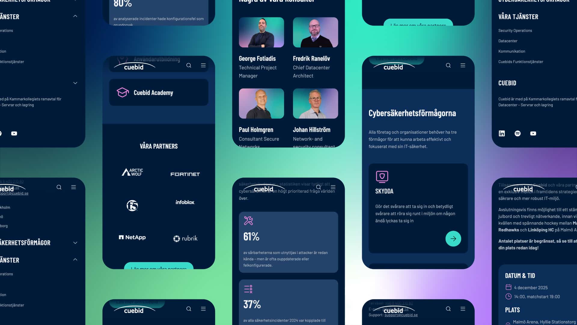 Utmaningen var att hitta balansen mellan teknisk kompetens och en varmare, mer personlig känsla. Resultatet blev en webbplats som förmedlar stabilitet utan att kännas kall – och som speglar Cuebid på ett naturligt sätt.