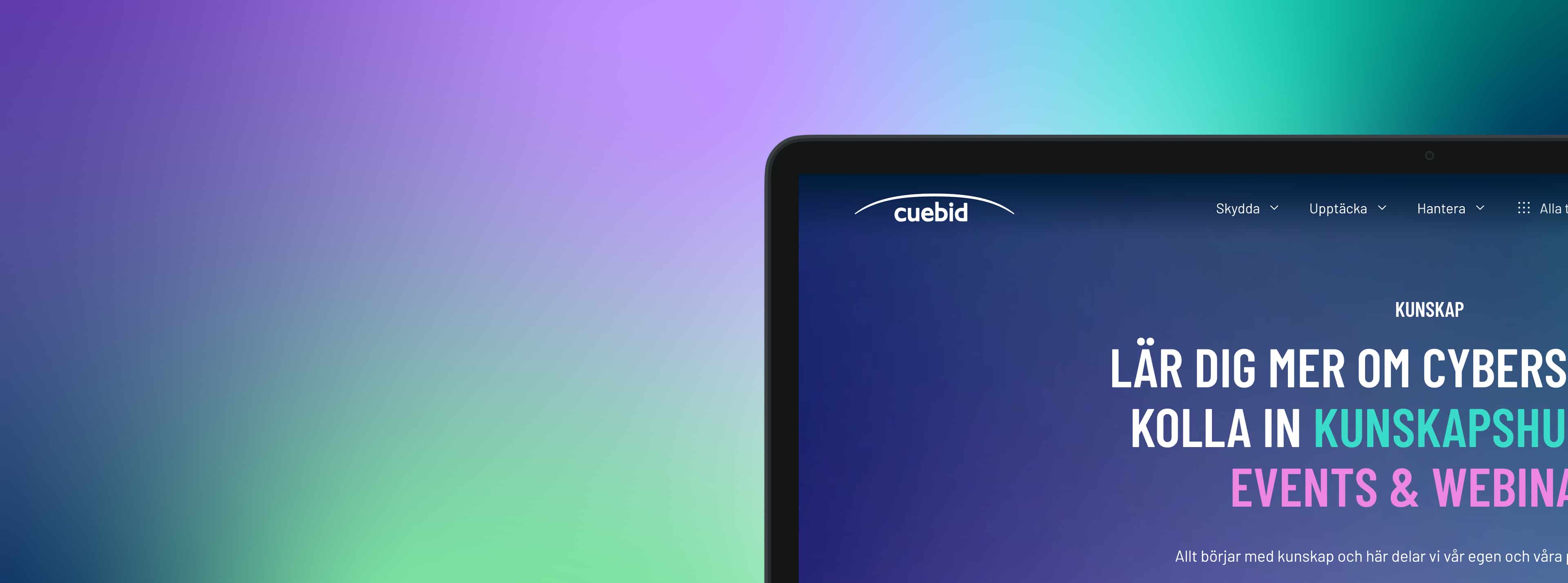 ”Skydda, upptäcka och hantera” är kärnan i Cuebids erbjudande. Dessa tre ord blev därför stommen i sajtens navigering – en lösning som skapar tydlighet, guidar användaren rätt och binder ihop varumärket och tjänsteutbudet.